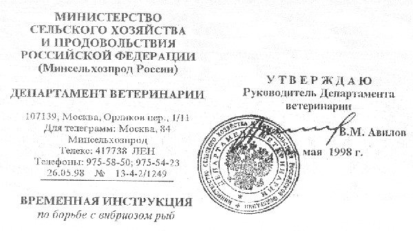 инструкции о мероприятиях по борьбе с вибриозом радужной форели, утвержденной
